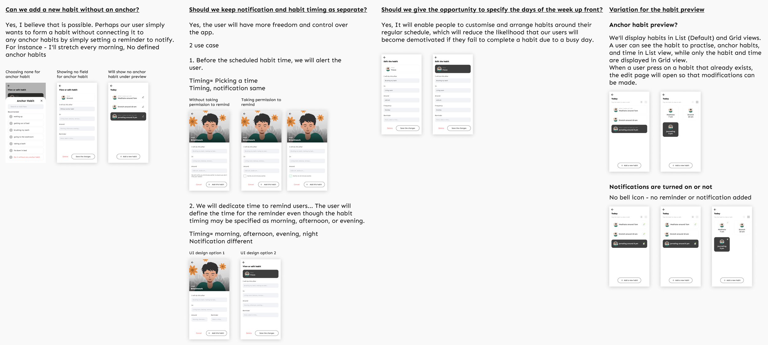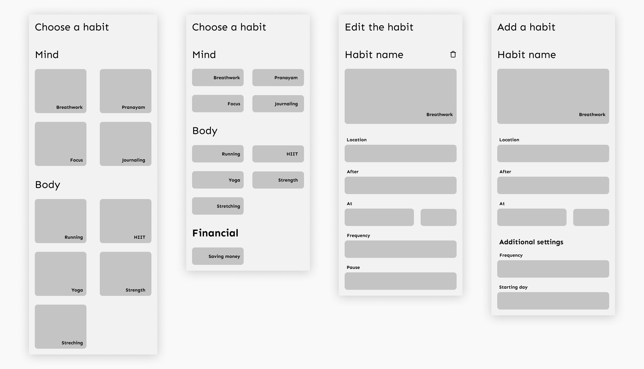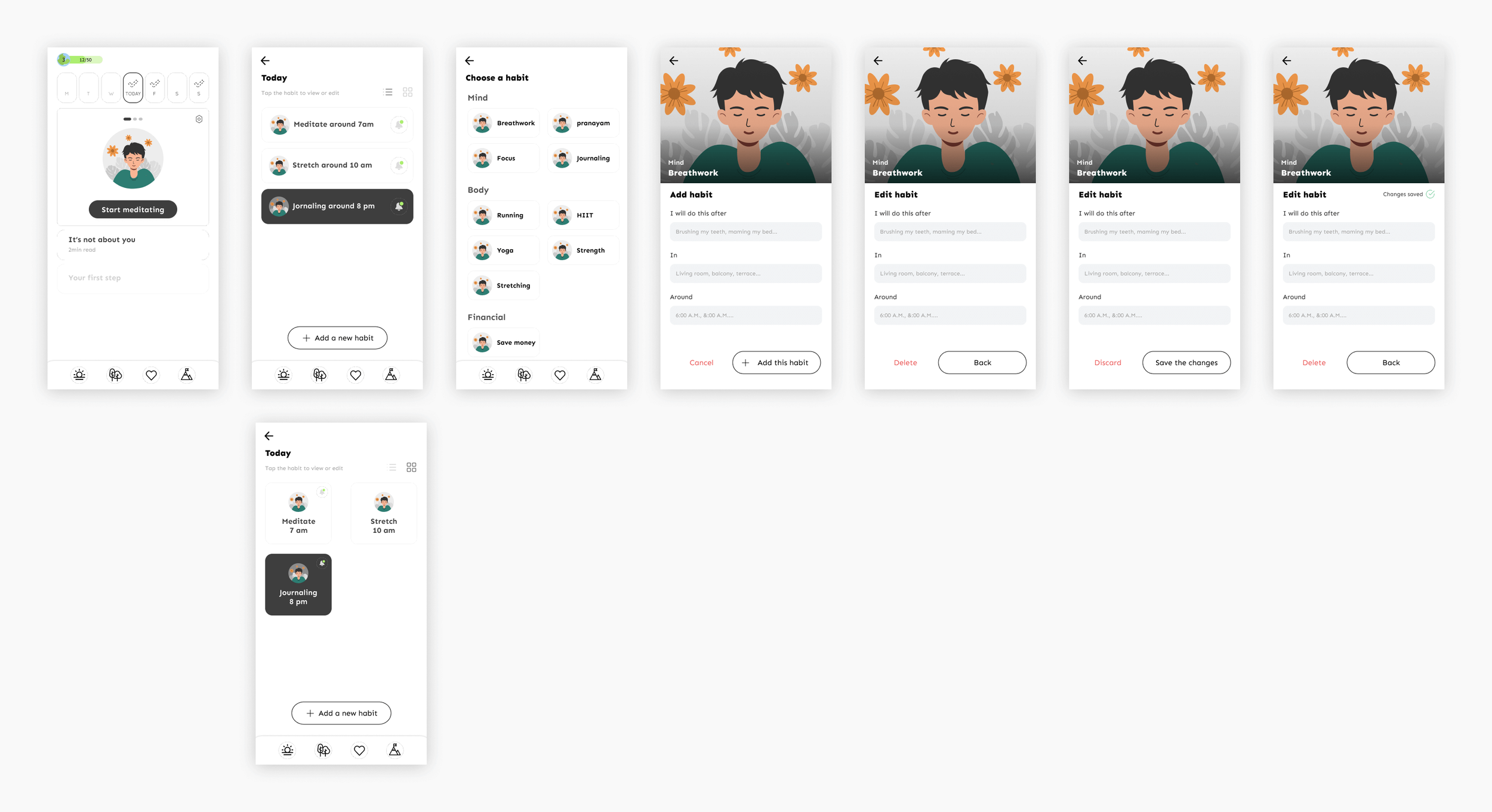 I began by determining how many habits I needed to incorporate into our existing experience. Then I explored where I could fit these without altering our existing user flow.